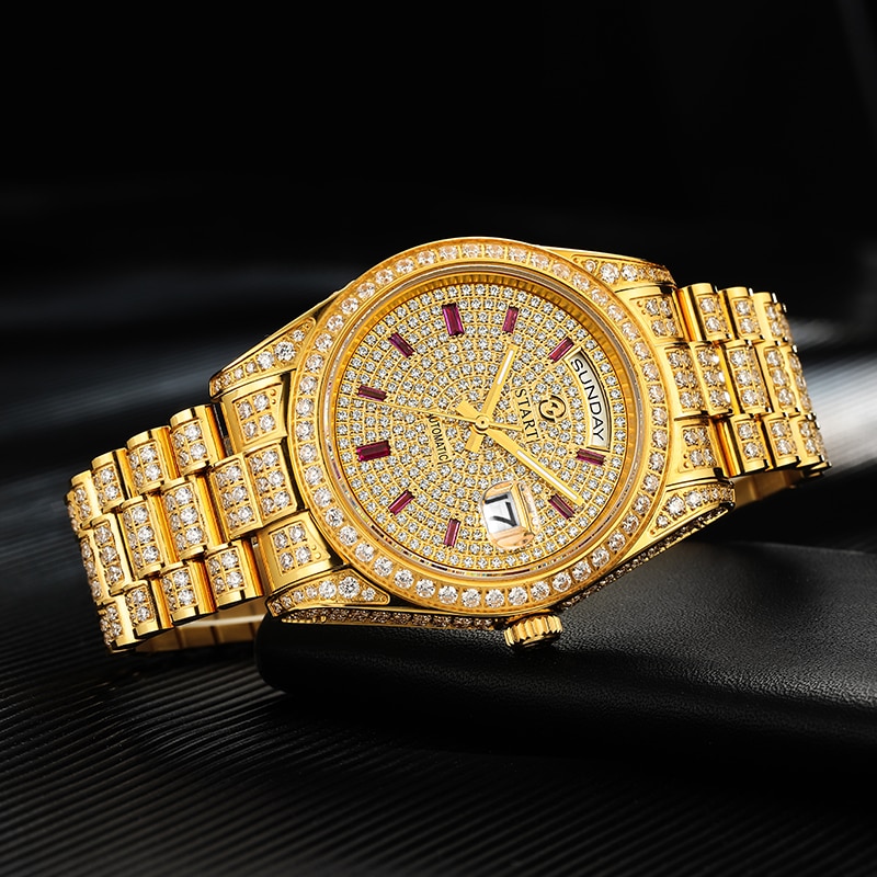 Diamond-studded men's watch automatic mechanical watch official authentic Gypsophila men's watch golden watch reliable quality