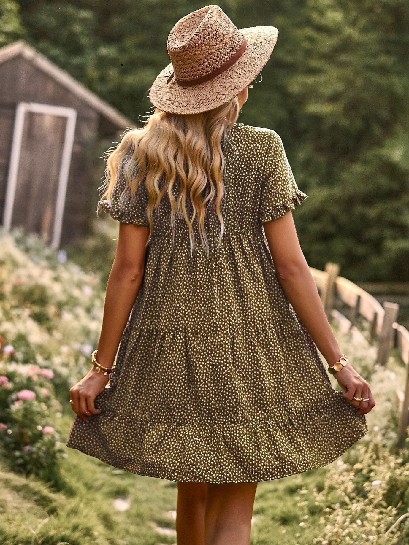 Summer Green Floral Print Ruffles Mini Dress Women Casual Round Neck Loose Vintage Dress Ladies Vacation Sundress Vestidos