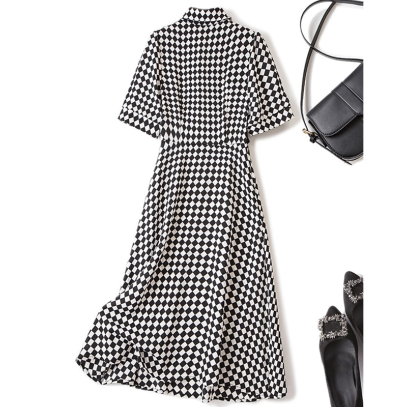 Summer Elegant Women Short Sleeve Dresses Office Ladies Plaid Patchwork Fake Two Pieces Dresses For Women Vestidos