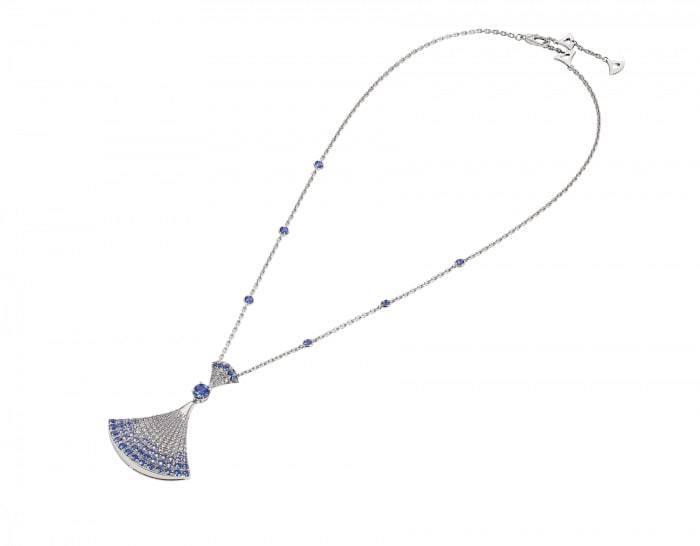 The DIVAS' DREAM necklace embodies Italian elegance and unleashes feminine power with a mysterious and haunting touch. Inspired by the mosaics of Rome's Caracalla Baths, the glamorous jewellery with its fan-shaped motifs and contemporary design and the sparkle of precious gemstones highlight Bvlgari's historical ties with Rome, the "Eternal City".