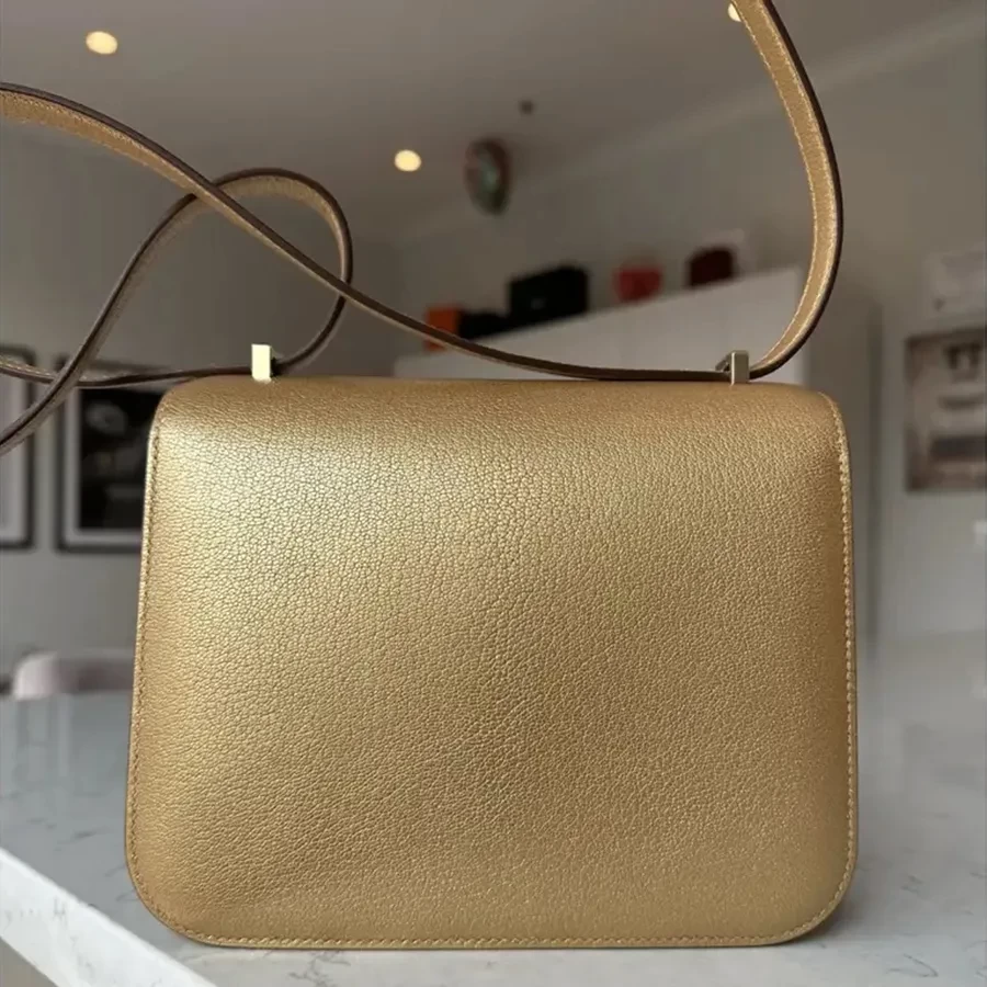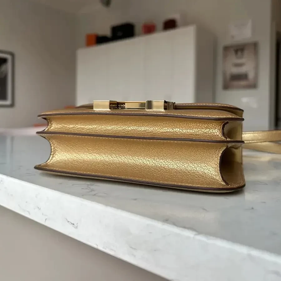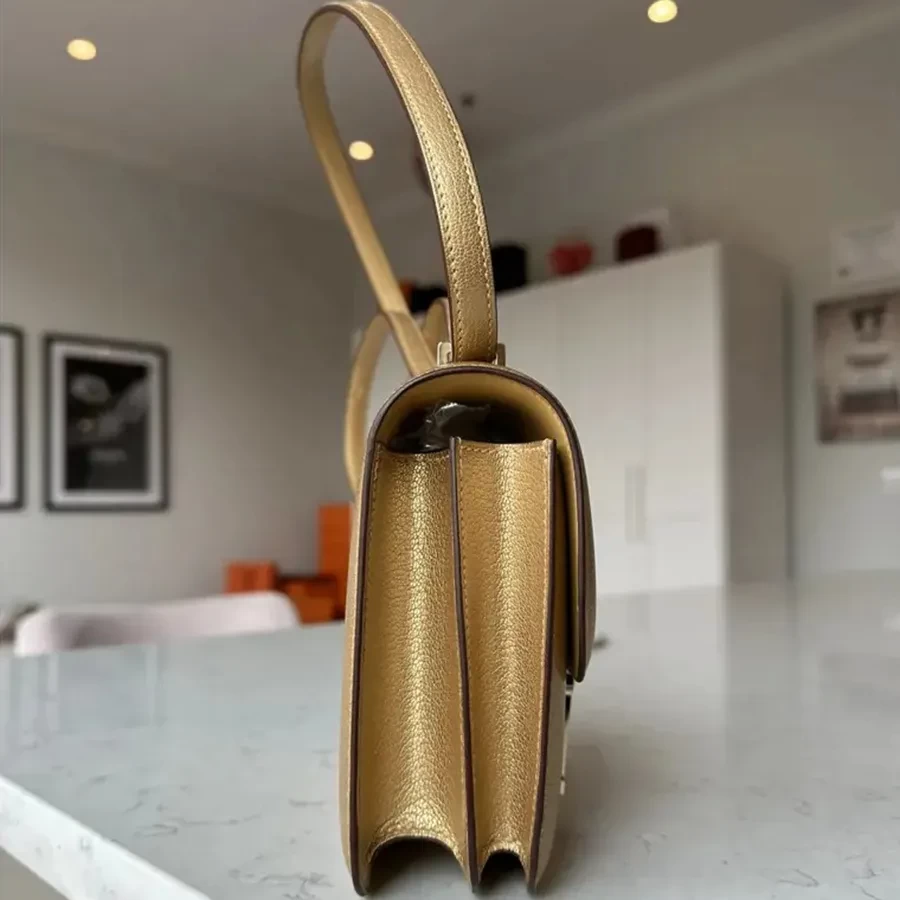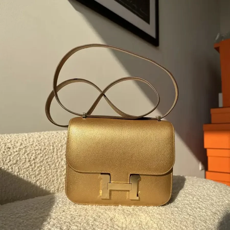 Túi Đeo Chéo Nữ Hermès Constance Leather Handbag Màu Vàng Gold